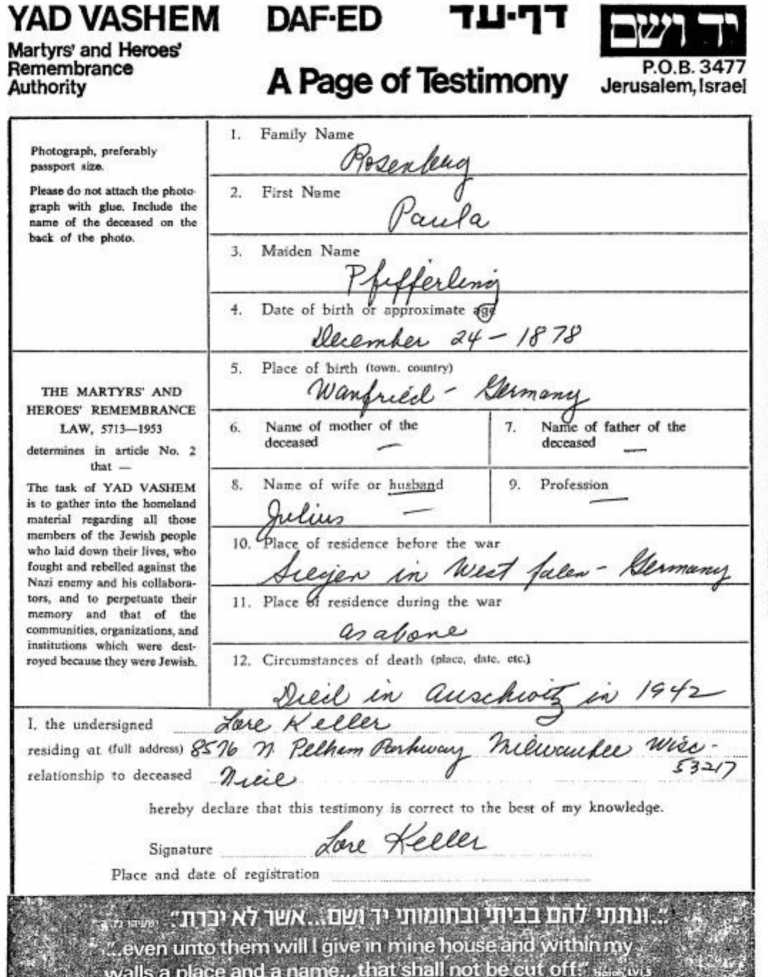 Paula Rosenberg / Yad Vashem