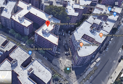 My father’s family settled in the Kingsbridge section of The Bronx New York. They lived at 2710 Sedgwick Ave (the building with the pin). The arterial road at the intersection is Kingsbridge Rd.