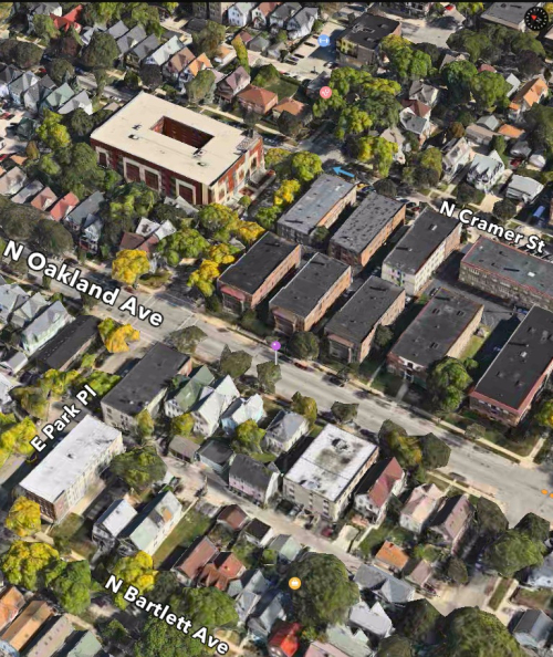 This is the apartment building at 1604 E. Kane Pace (where the pin is) where the Pfifferling family lived after first staying at a boarding house on Prospect Ave. It is where my mother lived when she met my father.