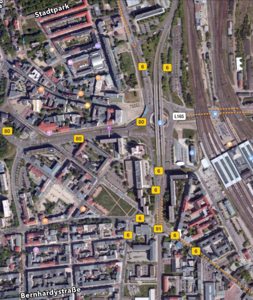 Where the purple pin is in this photo is where 17 Frankestrasse, the building where the Pfifferlings lived, was. The building was bombed in the war. This is the location where I had the Stolpersteine (tripping stone) for Julius Pfifferling placed. There is a new apartment house where 17 Frankastrasse was. You can also see the proximity to the Hauptbahnhof train station and the Riebeckplatz.