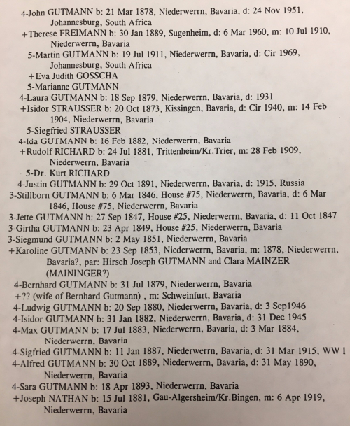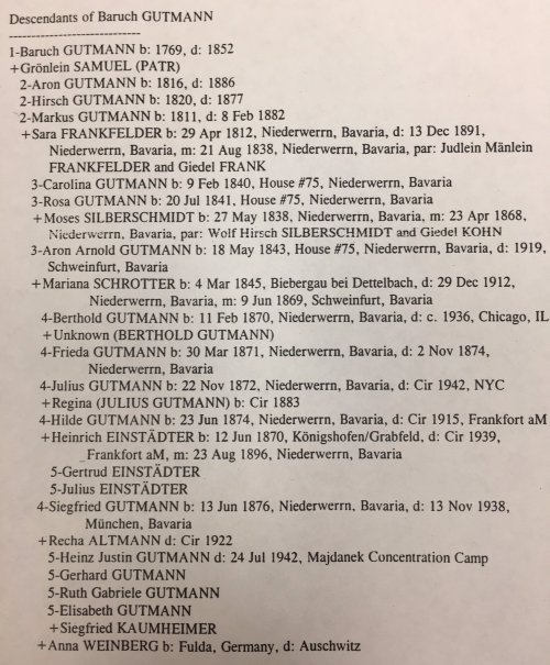 Gutmann family tree from Lillian Marx’s trip to Niederwerrn in 1999.