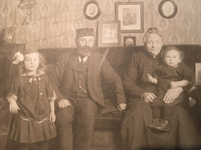 My great grandparents,Isaak & Bertha Heynemann, with my aunt and my father. Tante Irma is on the left & my father Erich is on his grandmother’s lap.