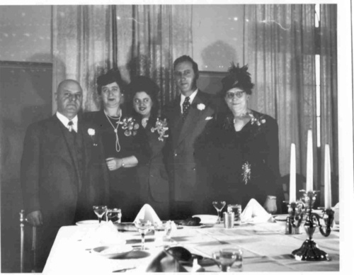 My parents were married on November 30, 1947, at the Shorecrest Hotel. From left to right: my mother’s parents, Opa Karl and Oma Julchen, my parents, Hilde and Erich Samenfeld, and my father’s mother, Oma Dina.