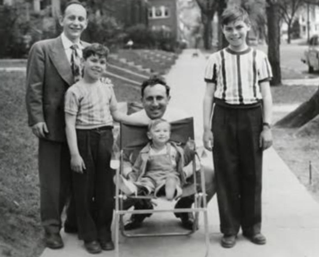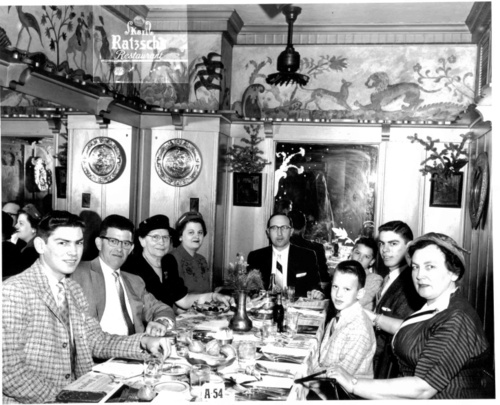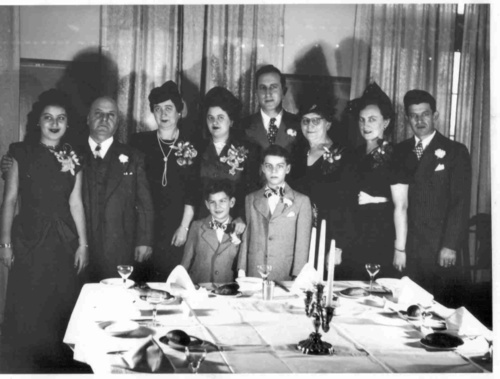 From left to right: Harold Jacobsohn, Walter Jacobsohn, Dina Samenfeld, Hildegard Samenfeld, Erich Samenfeld, me Gary Samenfeld, who thankfully can be barely seen, Peter Jacobsohn, my brother Dennis Samenfeld, and Irma Jacobsohn.