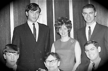 Front row, my brother, Dennis Samenfeld, Oma Dina Samenfeld, My cousin, Harold Jacobsohn. Back row me, Gary Samenfeld, my cousin Peter’s wife, Jean, and Peter Jacobsohn.