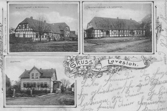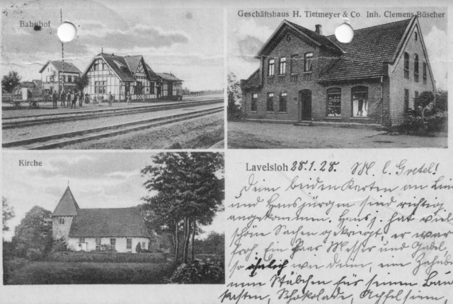 In the center of the photo is the house in Lavelsloh where my father and my Tante Irma were born. It is also where they had their cattle/livestock business, and also did their butchering.