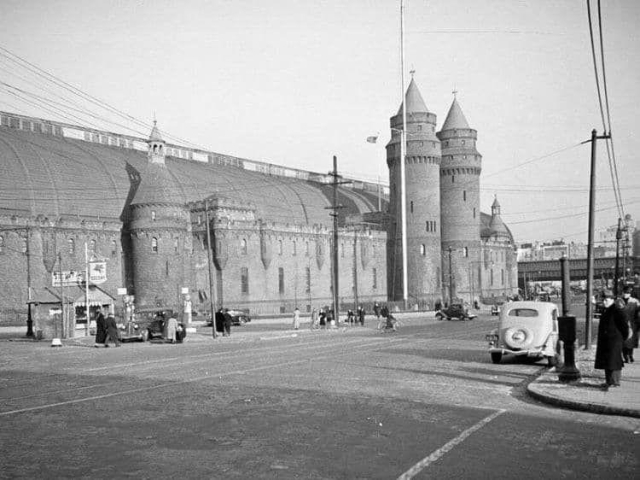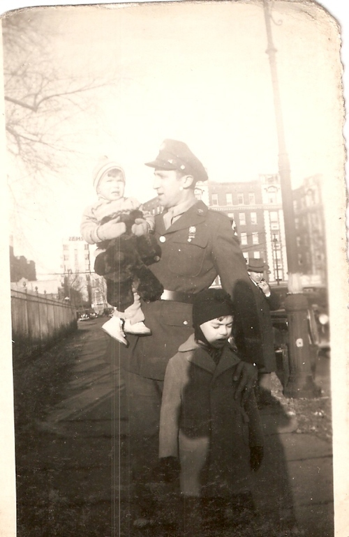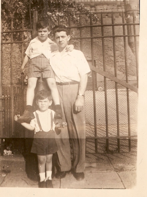 Uncle Walter with Peter (7) and Harold (3) a few blocks from their home in The Bronx. In the background of this photo is the Kingsbridge Armory.