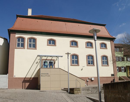 The former community’s synagogue was built in 1786 to replace a smaller previous one and renovated in 1885 and 1913. Its interior was badly damaged at the time of Kristallnacht on 9 November 1938. Its Torah rolls and other ritual equipment were set on fire and destroyed. However, the local fire brigade assisted in extinguishing the fire in order to prevent its spread to neighboring houses. The building, displaying a memorial plaque to the former Jewish community, is still standing and has since been used as a cinema and a factory storage hall. It is now being, renovated and will in future accommodate the local public library.