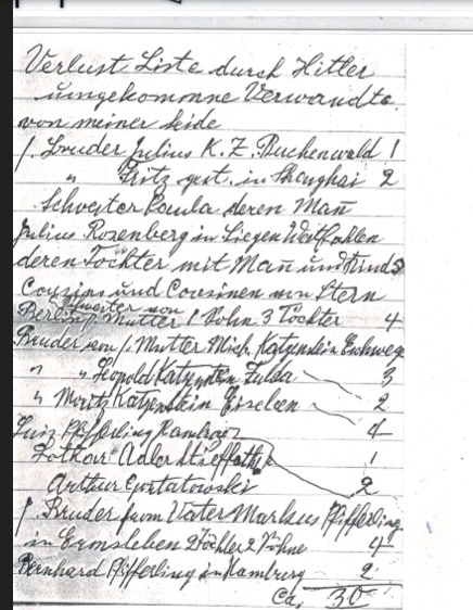 This is the list that Opa Karl made of the 30 people in his family that died in The Shoah.