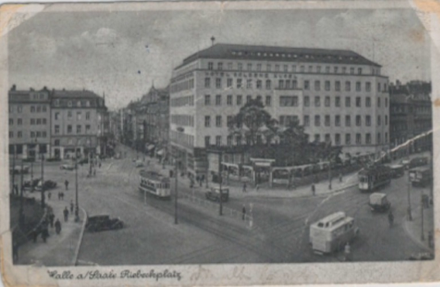 The view from the Riebeckplatz looks down the street, Frankestrasse, where they lived.