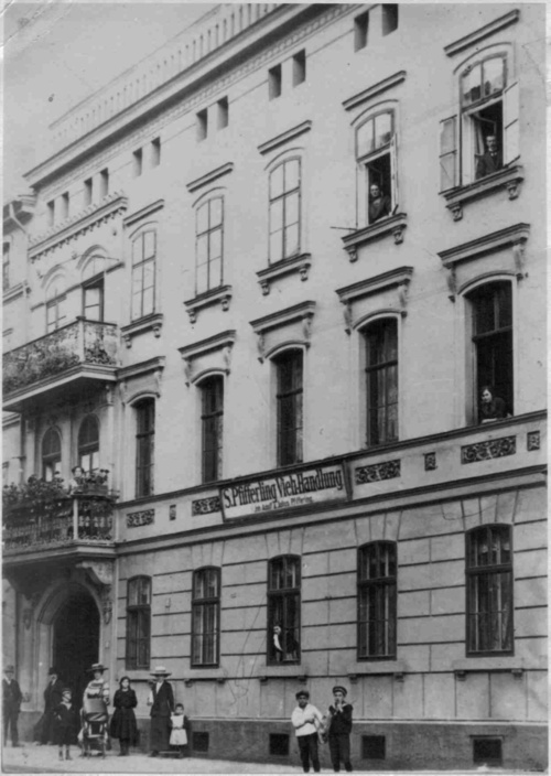 This is where the Pfifferling family lived in Halle a/Saale. The sign on the building, S. Pfifferling Veihandlung, is the name of the cattle/livestock business of the four Pfifferling brothers. The S on the sign is for their father, Sander. The brothers were my Opa Karl, his two older brothers, Adolph, and Julius, and Opa’s younger brother, Fritz.